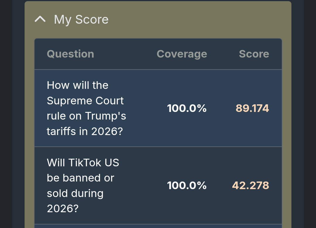@TimothyJohnson5c16 yeah tbh i dont do them often either and maybe im bad at forecasting low probabilities bc they dont matter much on prediction markets bc of the interest rate.. but i kinda often put one distribution kinda like the one u did and then a second super wide one to represent ‘maybe im goofin, i dont want to lose 10 trillion bayes points from some event being 3+sd outside of my range, but probably the scoring system is more forgivijg of that than bayes would be.. anyway sensible midpoint, i am more cowardly but unclear who is more correct
